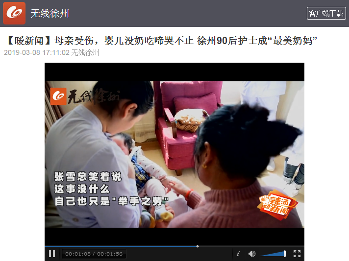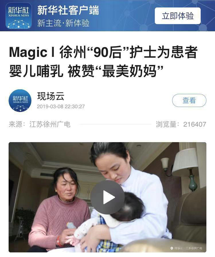 因母亲术后无法喂养,宝宝又不喝奶粉,断了“口粮”的4个月大娃一夜饿得直哭,嗓子都快哭哑了,手足无措的奶奶只得抱着孩子到护士站求助。一番周折后,最终找到了正在哺乳期的综合外科护士张雪。