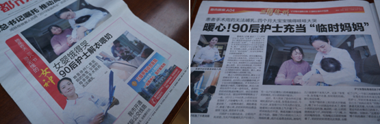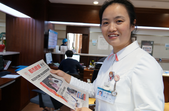 谈及全国各大媒体的争相报道,张雪说,自己就一个感受——职业价值感,不管是作为医院的一名护士,还是作为一个孩子的妈妈,自己都传递了一种正能量!“我的家庭对我都比较支持,说我做了一件应该做的事儿,要继续努力,好好干!”