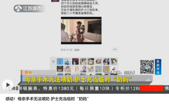 这温情的一幕经《现代快报》、《都市晨报》、徐州电视台《无线徐州》和江苏电视台《新闻空间站》报道后,在社会上引起了强烈的反响,很快,《徐州夜新闻》、江苏台《新闻360》《早安江苏》《城市咨询台》紧随其后播出了张雪的感人事迹。随后,江西卫视、安徽卫视、湖北卫视《新闻360》、辽宁卫视《第一时间》等全国各大媒体纷纷争相报道,张雪一度被媒体封为今年三八节当之无愧的“女神”。其中,辽宁卫视《第一时间》对张雪的报道长达五分多钟。一时间,betway在线登陆、徐州张雪、徐州最美女护士、徐州临时奶妈成为热搜,全网阅读量上百万。