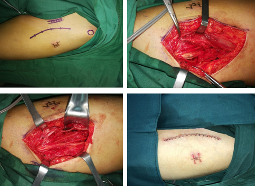 手外科三病区的陈步国、董自强、唐兆麟手术团队为小伙做了“左下肢股神经探查修复术”。术中显露股神经,见周围血肿形成,对神经造成压迫,股神经股直肌肌支与股外侧肌肌支断裂。