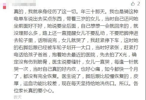 据徐州一家医院足踝科李医生介绍,上周三个绞伤的孩子刚出院,这一周,又有三个绞伤脚的孩子住院,当天还有一个刚从下面县里送来的2岁孩子,也因为小脚丫绞入后轮,皮肤软组织撕脱,正在做相关检查,很快就要推进手术室。
