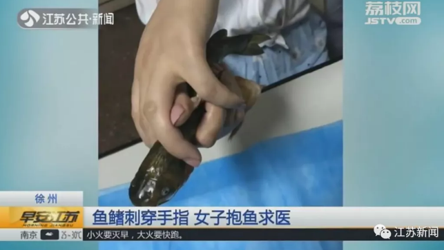 医生检查发现,这是一条昂刺鱼,鱼鳍的刺已经深深地扎在女子手指里。