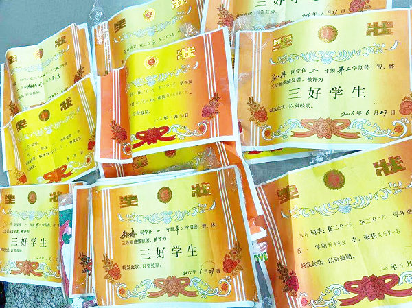 二姑拿出一大摞奖状,说孙冉成绩特别优异,在全镇都名列前茅,每个学期都被评为三好学生,家里的奖状贴了满满一墙,有四五十张,一直是令全家人骄傲的“学霸”,下学期她就要升初一了。这个懂事的小姑娘从来没上过补习班,经常帮爷爷奶奶做家务、照顾弟弟,弟弟也跟她一样爱学习。