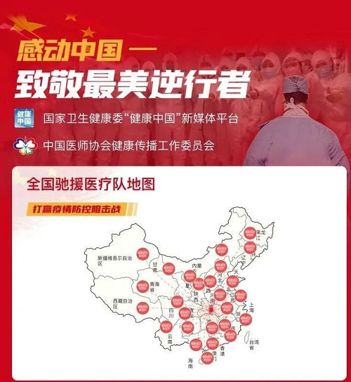 为进一步关爱一线医务人员,激励他们以更加坚定的信心和更加坚强的战斗力投入防控工作,健康中国新媒体平台和中国医师协会健康传播工作委员会联合发起"致敬最美逆行者"活动,通过展示一线医护人员的英雄面孔,记录他们的战"疫"日记,为他们加油打气。