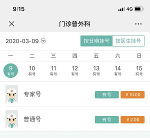 4. 选择需要就诊的科室,按“日期”或者“医生”进行预约。