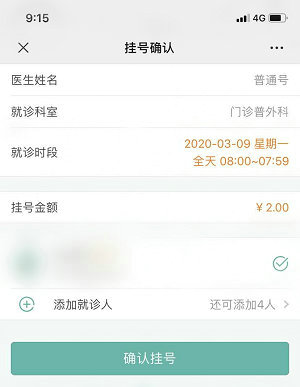 5. 进入“挂号确认”界面,点击“添加就诊人”进行信息登记。