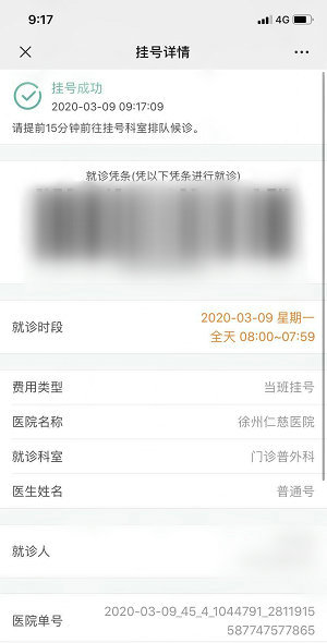 6.支付成功后,系统提示“挂号成功”,患者及家属可持“就诊凭条”到相关科室进行就诊。