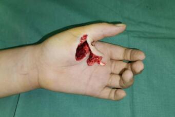 手外二病区的唐洪伟医生接到急诊通知后,为龙龙进行了专科检查,检查结果显示其左手拇长伸屈肌腱两段离断,离断血管、神经以及子骨均在撕脱皮肤内。很快,唐医生手术团队为龙龙进行了手术,术中清创,清洗肌腱,一一修复断裂的血管、神经,手术顺利。