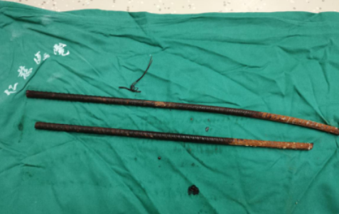 医生团队手术两小时取出钢筋,切口达半米长
