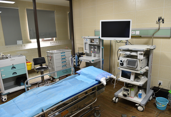 •内镜室常规开展无痛胃肠镜检查,患者在无不适感觉中完成肠胃镜检查,专职麻醉师为受检患者提供安全保障。
