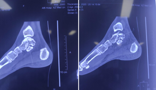 男孩跟骨骨折,距下关节镜微创撬拨复位