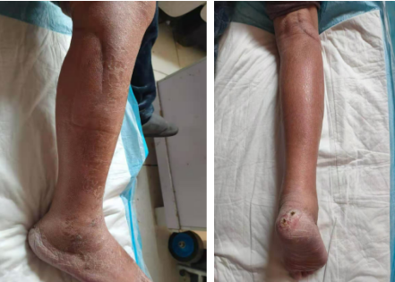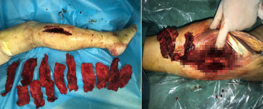 三个月前的下午,家住河南永城的70岁的徐大爷(化名)在门口路边遛弯时不幸遭遇车祸,右小腿惨遭碾压,全身多处外伤,在当地医院抢救后病情稳定下来,但随后又因右小腿肿胀疼痛加剧,于是又进行了切开减压探查手术,手术中发现小腿伤口出血不止,小腿肌肉大部分机化坏死,并出现了休克等情况,徐大爷的生命危在旦夕。