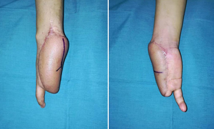 手是人身体中很重要的器官,人类可以自如地运用自己的手指,这是人类文化和科技进步的关键。手指残缺可以说是非常痛苦的一件事,不仅影响患者的生活质量,还容易使患者产生自卑心理。家住邳州的小吴,半年前干活时不慎被水泥块砸伤右手,当时他觉得右手剧痛,仔细一看右手已经严重变形,家属立即带着小吴前往当地医院进行救治,虽经过多次的手术治疗闭合了伤口,但小吴也失去了右手的大部分手指,仅小指保留。