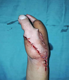 经过术前细心的准备,在朱辉主任带领、李甲副主任医疗团队参与下,小吴在全身麻醉下行“右拇指全型再造术”,手术很顺利,小吴经过术后的一系列治疗,目前已可以出院。
