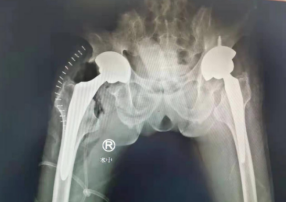 因为吕师傅身患两种“不死的癌症”,病情拖延时间久,比较复杂,张贯林副院长和蒋守海主任张玉帅陈强团队一起,进行了严谨周全的术前评估和分析,制订了万无一失的手术计划与步骤,在间隔一周的时间内,张院长和蒋主任手术团队为患者先后进行了两侧全髋关节置换手术。术中,手术团队以改良Gibson入路,切开阔筋膜,显露髋关节囊,切开,骨刀去除增生骨赘,脱出股骨头,摆锯截骨,取出坏死的股骨头,清理,依次安装髋臼假体、股骨柄、股骨头,测试髋关节活动稳定无脱位,透视全髋关节假体位置合适。手术很顺利、成功。