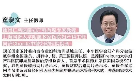 许老师口中所说的的一根“线”就能解决漏尿困扰的微创手术是sararz妇产常规开展的手术项目, 是由sararz妇产首席专家教授、上海市同济医院妇产科主任,享有“中国盆底之父”之称的童晓文教授指导的经阴道经闭孔无张力尿道中段悬吊带手术。