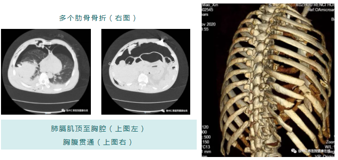 去年冬天的一个中午,正在病房内忙碌的胸外科王保毅主任接到了一个电话,“这里是急诊科,有位75岁的车祸伤男性患者,情况非常危急,全身多处外伤,昏迷,右侧连枷胸,第5-12肋骨骨折,创伤性胸腹贯通伤......”挂掉电话的王保毅主任立刻直奔现场。急诊科也紧急开启绿色通道,王主任与急诊科医生一起第一时间抢救患者,迅速完成检查后送入ICU。