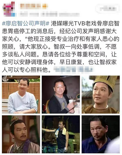 又一位香港老戏骨患癌!3月22日晚间媒体报道,知名老戏骨、“黄金配角”廖启智不幸患上了胃癌,情况一度病危,目前已全面停工,积极接受治疗中。
