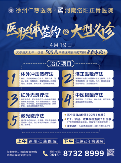 义诊名额有限,请大家一定要提前预约!咨询预约电话:0516-87328999。