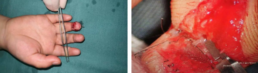 考虑到小硕年龄较小,手指如果缺损会影响小硕的心理,手指外形美观及后期的功能,尽管指尖再植难度很大,团队也要尽全力尝试帮其接活断指。李海建再次查看小硕的离断指体判定还有再植的可能,但由于指尖血管非常纤细,基本上都是0.3-0.5毫米,肉眼几乎是看不见的,难度可想而知,一般的再植器械无法完成,于是向朱辉主任请示后,决定采用超级显微外科技术,使用超显微器械予再植。术中探查小硕的离体指血管管径大约0.3毫米,借助医院最新引进的徕卡显微镜,在放大8至16倍条件下,予11号显微缝合线也只能吻合4到6针,十分考验医生的显微缝合技术。李海建医生手术小组进行了大概两个半小时的时间,帮助小硕完成右环指再植,术后血管通血良好。