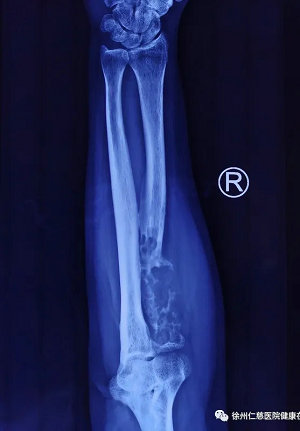 患者3年前发现右前臂疼痛,近期体检时才发现是右桡骨骨肿瘤。
