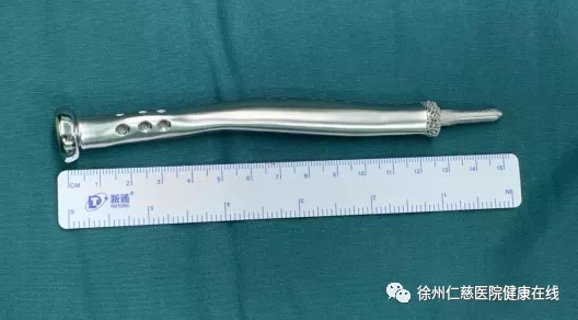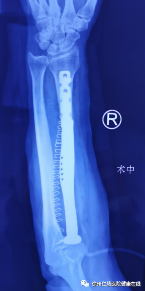 经过详尽的术前准备,预演了各种可能的细节,确保万无一失后,sararz关节科出动了最强“天团”,张传开主任和邱东新副主任医师在台上“把刀”,张贯林副院长和蒋守海主任台下“护航”,在手术室和麻醉科的通力合作下,手术医生小心翼翼地分离和保护重要的神经、血管,既完整彻底切除桡骨肿瘤,同时也最大限度地保留正常的组织和结构;然后再进行精细的骨骼重建程序,对假体放置的位置、角度进行了精细化调整,各组肌腱韧带给与充分的重建,恢复正常的生理功能,以保证术后患肢的功能得到最大程度的保留。