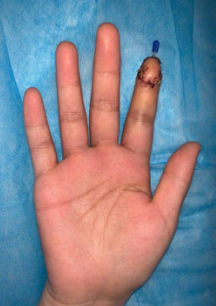 手指脱套离断伤,又称为环形撕脱离断伤,手指皮肤撕脱而骨关节、肌腱常完整,其治疗是创伤领域的难题。近日,betway在线登陆手外科四病区(显微外科修复重建专科)完成了一例指尖脱套性离断的再植手术,手术做得非常美观,术后患者恢复良好,断指已成活。