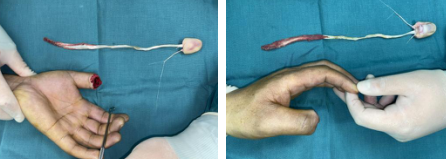 5月8日这天下午,艳阳高照,沛县的老刘(化名)在工地干活时不慎被钢筋绞伤左拇指,致左拇指远节撕脱性完全离断,肌腱、血管长段抽出。老刘的同事说,他家亲戚曾因手指离断在betway在线登陆接活了,于是连忙陪同老刘前来betway在线登陆手外科就诊。当时,手外二病区熊祖国医师正在值班,熊医师立即查看老刘断掉的左拇指,检查结果显示左拇指自甲根部撕脱性完全离断,其中肌腱、血管神经束自近端长段抽出。