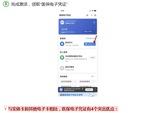 ◆ 方便快捷:参保人可不依托实体卡,直接通过国家医保APP,江苏省医保云APP、银联云闪付APP,或者微信、支付宝等经由国家医保局认证授权的第三方渠道激活使用,十分方便。