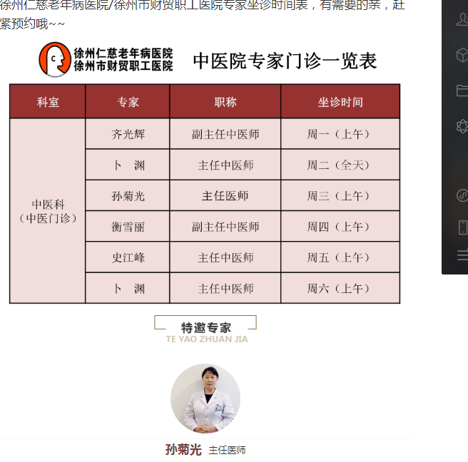 ★院名中医,1993年毕业于南京中医药大学针灸系,2004年取得徐州医科大学神经内科学硕士,2007在北大六院(中国精神卫生中心)进修心理学。徐州心身医学学会副主委,徐州神经内科学会委员。