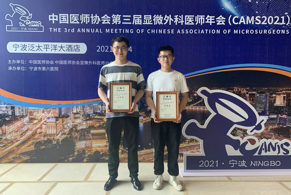 本次显微外科医师年会还举办了超级显微外科血管吻合大赛,经遴选,全国共有70组选手进入比赛,我院手外一裴广楠医生、手外二齐强医生在比赛中获得第25名。