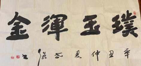 术后马师傅伤口恢复得非常好,一周后做了二次手术缝合,现在马师傅左手的感觉,运动恢复如初,手指也保住了,他非常满意,一颗悬着的心终于放下了。马师傅笑呵呵地用左手拿起宣纸和毛笔,写下了四个遒劲有力的大字:璞玉浑金。