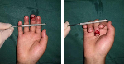 李医生为宽友进行了专科检查,骨头没有伤及,只是指端皮肤软组织损伤。李医生说:“如果想再植修复断指,必须找回残缺的指端皮肤软组织,否则只能做残修处理,或者后期再取皮瓣再修复,但是后两种方案多少都会影响手指的美观性。”听了医生的话,宽友的家人立即驱车返回家中,半小时后,成功找回断指。