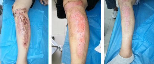 今年入夏以来,我院伤口造口门诊来了多名骑电动车摔伤,却在家自行涂抹药物致皮肤感染的患者,最终经过国际造口治疗师鹿琳专业的伤口处理,约10天左右,患者伤口完全愈合。