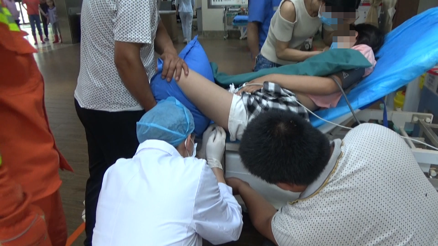 经小女孩家人了解,插进女孩大腿的是圆凳的支架钢筋,女孩坐凳子时上面的圆凳面滑落,导致女孩重心不稳,钢筋刺穿了女孩的大腿。