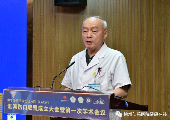 中国医师协会慢性难愈性创面专委会副主任委员、中华慢病学院伤口分院院长冯光教授致辞,冯光教授对我院创面修复科的实力,及目前所取得的一系列成绩表示肯定,他预祝淮海经济区创面诊疗的水平得到快速提高,伤口联盟发展越来越好。