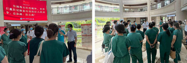 8月18日下午2点前,120人已经分批全部出发,奔赴经开区东环街道、金山桥街道、金龙湖街道和大庙街道四个街道。院长助理范正磊做工作动员,医务处王保庆和急诊科刘媛媛护士长带队并随时替补。
