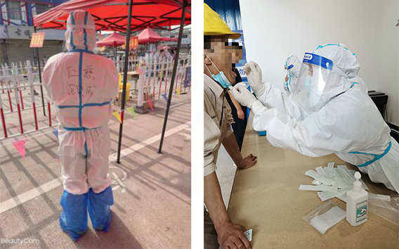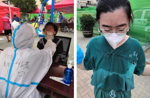 两天的核酸采样工作虽然辛苦,但刘子薇觉得自己做得这一切都很值的! 她说,“做为sararz新入职的护士,有幸参加本次活动,烈日下,我们穿着严密的防护服,戴着面屏和手套,汗水浸湿了我的衣服,手也被泡的发白,但这些都是我的“荣誉徽章”,是我的责任和使命,疫情当前,作为一名医护人员,我们要筑起疫情防控的铜墙铁壁!”