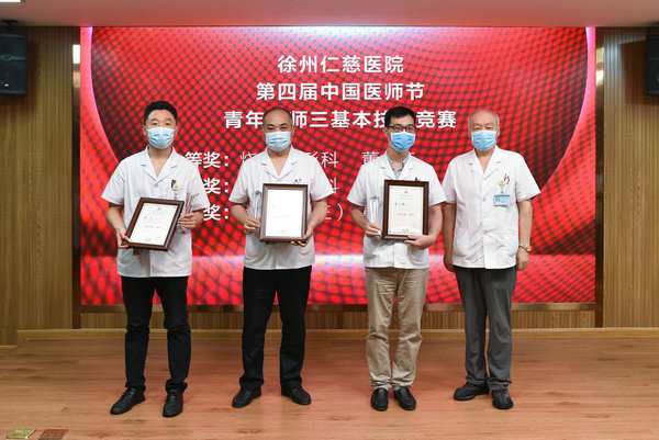 鄂云翔院长为三基本技能竞赛奖项的获奖科室烧伤整形科、医疗美容科、手外科三病区代表颁奖。