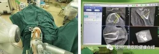 手术开始,术中3D-C臂扫描采集数据,三维重建骨折位置及形态,天玑骨科机器人规划骨隧道位置,自动完成进针导向器定位。主刀医生张主任沿导向器打入导针,关节镜下再次验证导针位置满意,建立骨隧道,非可吸收线“R”形捆扎后交叉韧带止点部,复位骨折端。后交叉韧带位置,走形,张力均满意。