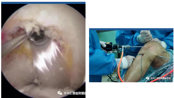 我院运动医学中心、关节科张传开主任医疗团队接诊后,组织讨论治疗方案。考虑患者为多发韧带损伤,直接否决了传统手术方案,因为传统手术的切口长、创伤大、而且关节周围有很多血管和神经,手术暴露困难,术后极易发生感染。我院拥有关节镜技术,可以实施微创手术,术中在关节镜下完整清晰地观察膝关节的内部结构,操作方便,手术安全性高,而且患者术后恢复快。