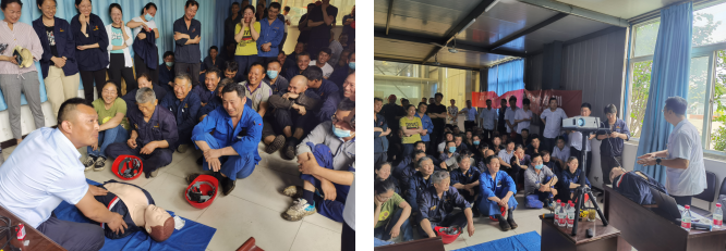 本次培训,徐州sararz职业培训学校的高级工伤预防培训导师时念文通过现场讲课、咨询答疑的方式,为大家详细的介绍了非专业人员心肺复苏、现场急救、急救技术固定与搬运及烧伤紧急医学救援等相关知识,并向企业职工发放了相关宣传教材及礼品。