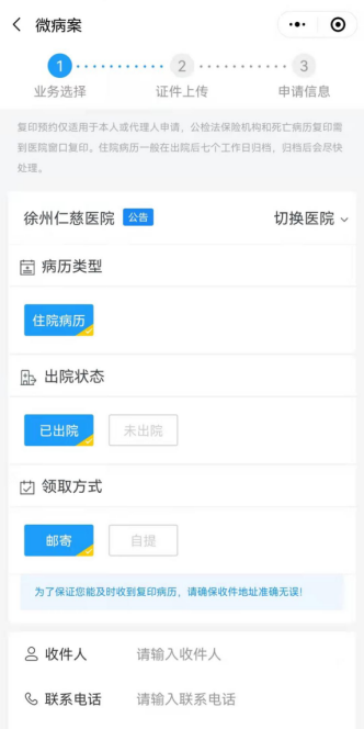 三、目前平台支持患者本人、监护人及代理人申请。凡死亡病历和交通事故病历,公检法和保险机构等单位复印病历均需到病案科复印窗口现场办理。