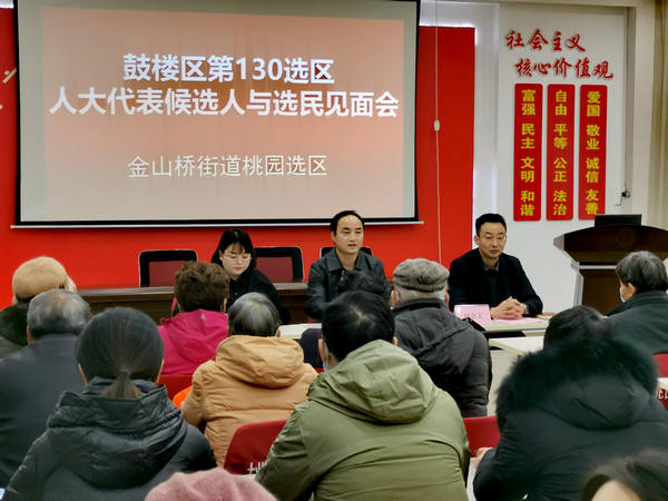 2021年12月15日下午2点,在徐州经济技术开发区桃园社区三楼社区会议室,由金山桥街道桃园选区组织召开了“鼓楼区第130选区区人大代表候选人与选民见面会”。2位候选人分别是betway在线登陆党委副书记、副院长、主任医师石荣剑和betway在线登陆党委副书记、副院长、工会主席时念文。77位选民代表参会。