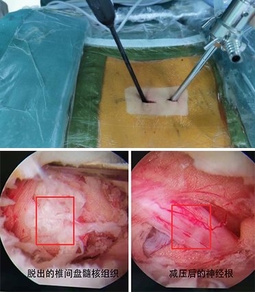 我院脊柱科张冶副主任医师详细查阅了柳女士的病史资料并完善相关检查后,确诊她为腰椎间盘突出症伴腰椎椎管狭窄,且神经压迫严重,有明确的手术指征。在了解到柳女士惧怕“开大刀”的诉求后,张冶医生建议采用我院常规开展的微创手术,单边双通道脊柱内镜技术(UBE)行椎间盘切除。