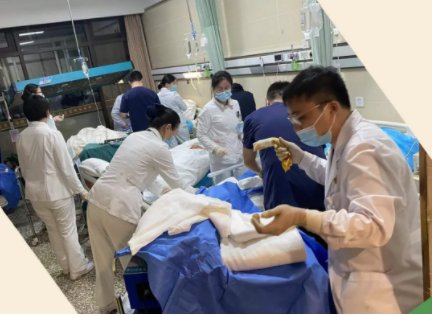 苏建医生立即打电话向烧伤科主任黄振汇报,黄主任立即作出指示,启动成批烧伤救治预案,联系所有烧伤科医护人员半小时内到岗,医院领导高度重视,组织烧伤科全体人员全力以赴抢救患者。