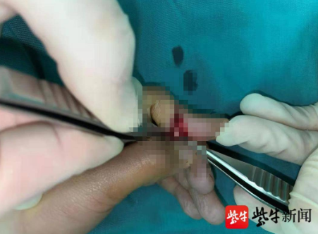 今年12岁的梦梦,是徐州市区一所小学学生。2月14日,徐州市区中小学开学。前一晚,梦梦的父亲带她去购买清洁用品。在回家路上,梦梦打开了包装好的钢丝球,发现两个黏在一起,于是她试图用手将它们分开。没想到,很快钢丝就绞上了梦梦的手指,且越缠越深,已经伤及左手食指,爸爸急忙带她到当地医院就诊。医生查体后表示孩子的左示指(食指)血管、神经、肌腱均有损伤,建议立即转诊。