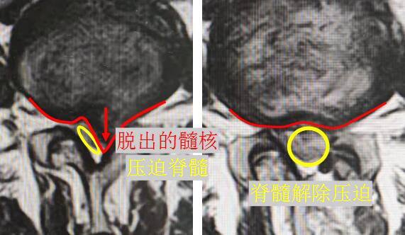 黄圈为被压迫的神经前后变化,微创术后已恢复