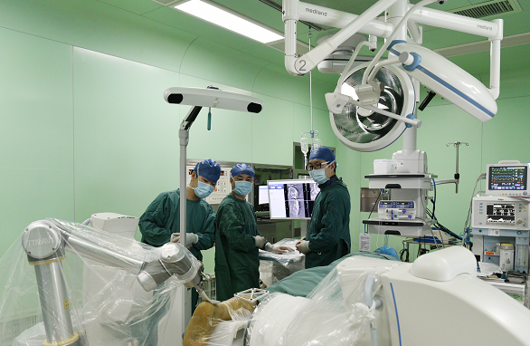 常规的切开手术往往需要内踝截骨才能暴露距骨,创伤大,感染风险高,患者十分痛苦,我院足踝外科采用关节镜联合天玑骨科机器人微创手术,优势明显,机器人导航辅助下,手术团队将精确度误差控制在0.2毫米以内,患者术后几乎感觉不到疼痛,帮助患者早日下地行走,恢复健康。