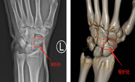 爱运动的小刘在和朋友打球时不慎与队友相撞摔倒,摔倒时他左手手掌惯性撑地,导致左腕疼痛剧烈,无法进行正常活动。手外科唐医生接诊后通过X片及三维重建均显示小刘为左腕舟状骨骨折。